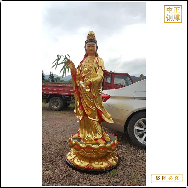 其次,在西域,有向貴客贈(zèng)送齒木和清水的習(xí)俗,表示希望貴客健康、平安、恭敬。柳枝也是一種吉祥的禮物。所以,請(qǐng)佛菩薩時(shí),人們也會(huì)用柳枝和清水。經(jīng)過(guò)緩慢的傳承和發(fā)展,柳枝已逐漸成為銅雕觀世音菩薩。