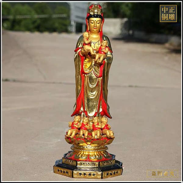 送子觀音是中國傳統(tǒng)文化中的一個重要信仰,具有深厚的歷史文化底蘊和廣泛的社會影響。在傳統(tǒng)社會中,銅觀音像中送子觀音被視為生育神祇,許多人都會前往寺廟祈求子嗣,同時也寄托著人們對家庭幸福、多子多福的美好愿望。