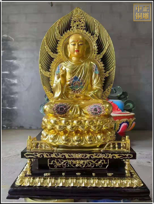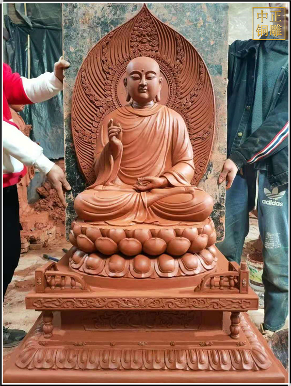 這件1.6米高的地藏王銅像,現已完成發(fā)貨安裝,從泥塑制作到上色歷時兩個月的時間,據《地藏菩薩本愿經》載:其為釋迦既滅后,彌勒未生前,眾生賴以救苦,自誓必盡度六道眾生,始愿成佛的菩薩。相傳其顯靈說法的道場在安徽九華山。作為胎藏界地藏院的菩薩,形象為身披袈裟,掛瓔珞、戴寶冠,手持寶珠及錫杖,呈菩薩或沙門狀。九華山月身寶殿內設七級木質寶塔,每層佛龕八座,供奉地藏全身從像。大足177號地藏變相窟塑地藏菩薩中坐,左右各二化身像,造型古樸渾厚,線條洗練,突出了憨厚慈悲的性格特征。敦煌莫高窟五代、宋代窟的甬道頂部均繪有地藏像,體態(tài)豐滿,衣飾華麗,色彩濃艷,形式多變。唐縣中正銅雕工藝品廠是鑄銅雕塑的廠家。擁有設計師和雕塑團隊,引進的鑄造技術,開發(fā)出一系列的銅制工藝品。
