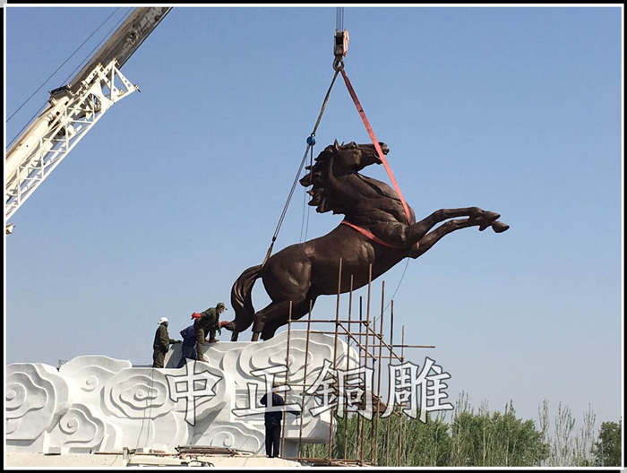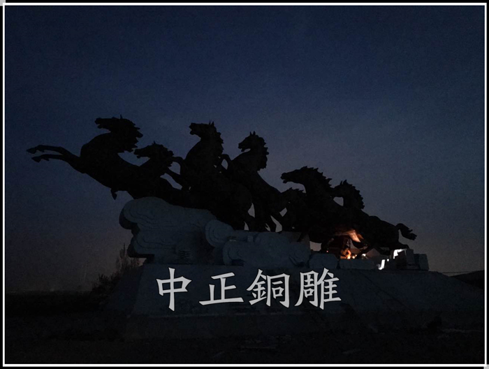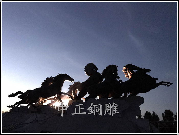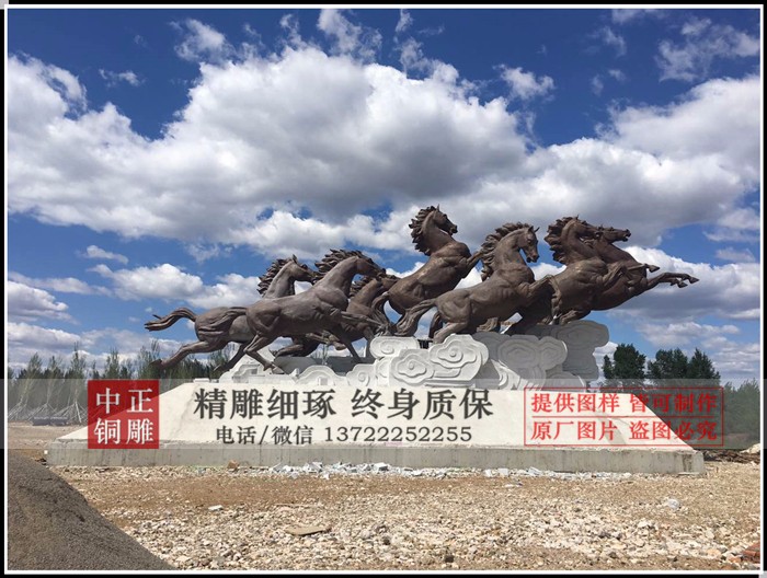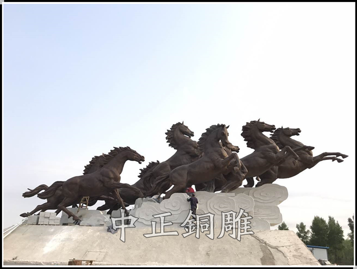 安裝于新疆維吾爾自治區(qū)阿瓦提縣的八駿馬鑄銅雕塑,八駿雕塑總高5.5米,威武雄壯,展其驥足,雄姿勃勃。此八駿馬為青銅制作,為當(dāng)?shù)卦偬盱n麗景觀。